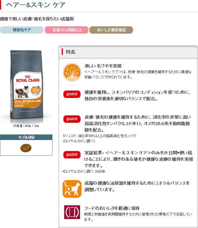 トップ > ロイヤルカナン > キャットフード > 年齢別 > 成猫用 > ロイヤルカナン FCN ヘアースキンケア 400g